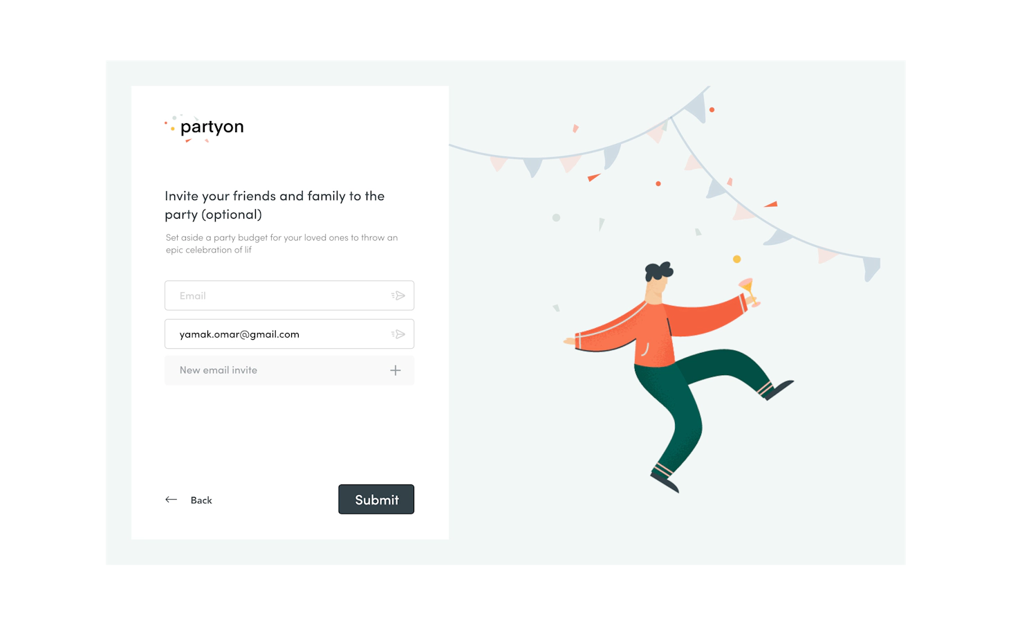 We designed and developed the onboarding sign up process for PartyOn, to help their users go through a series of friendly steps when they are deciding what happens when they die. It was challenging, but at the same time a lot of fun.